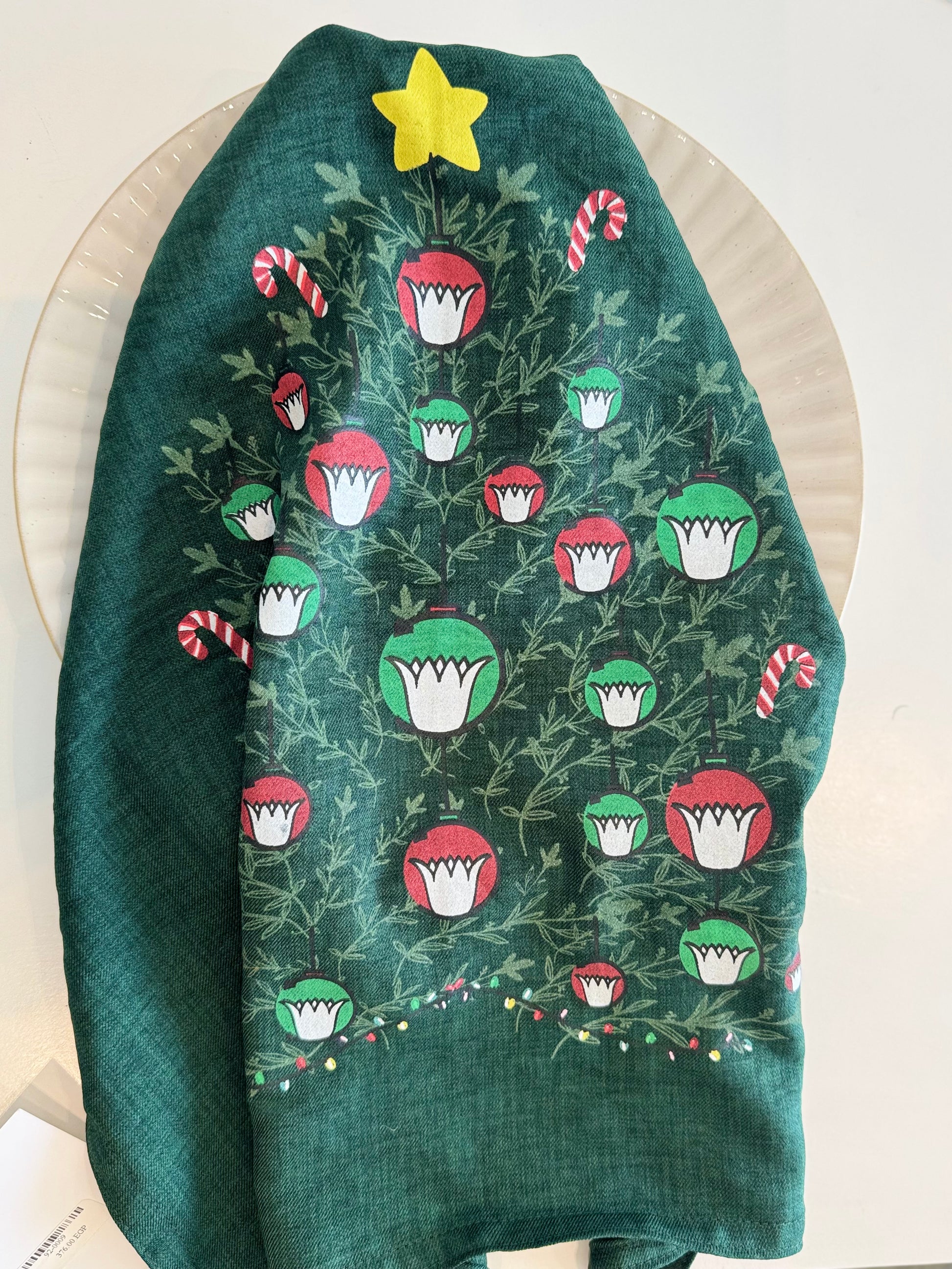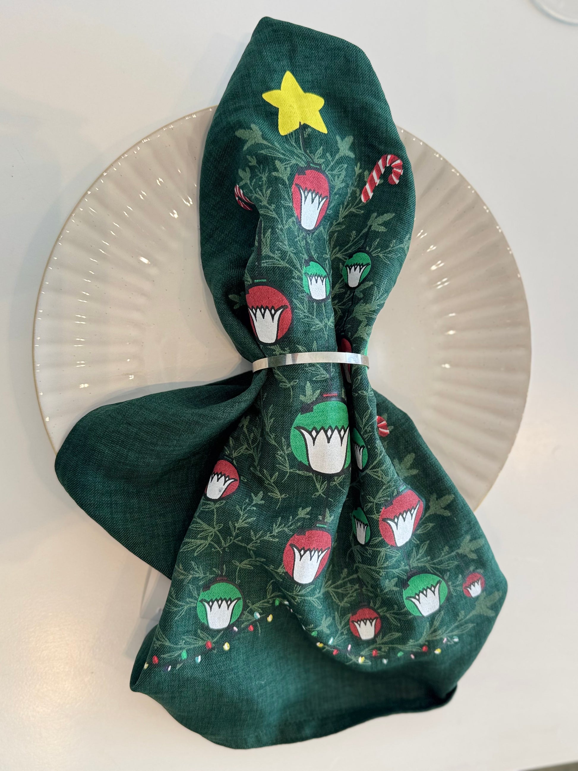 This napkin is hand printed and the patterns are hand drawn with our new restart motifs.