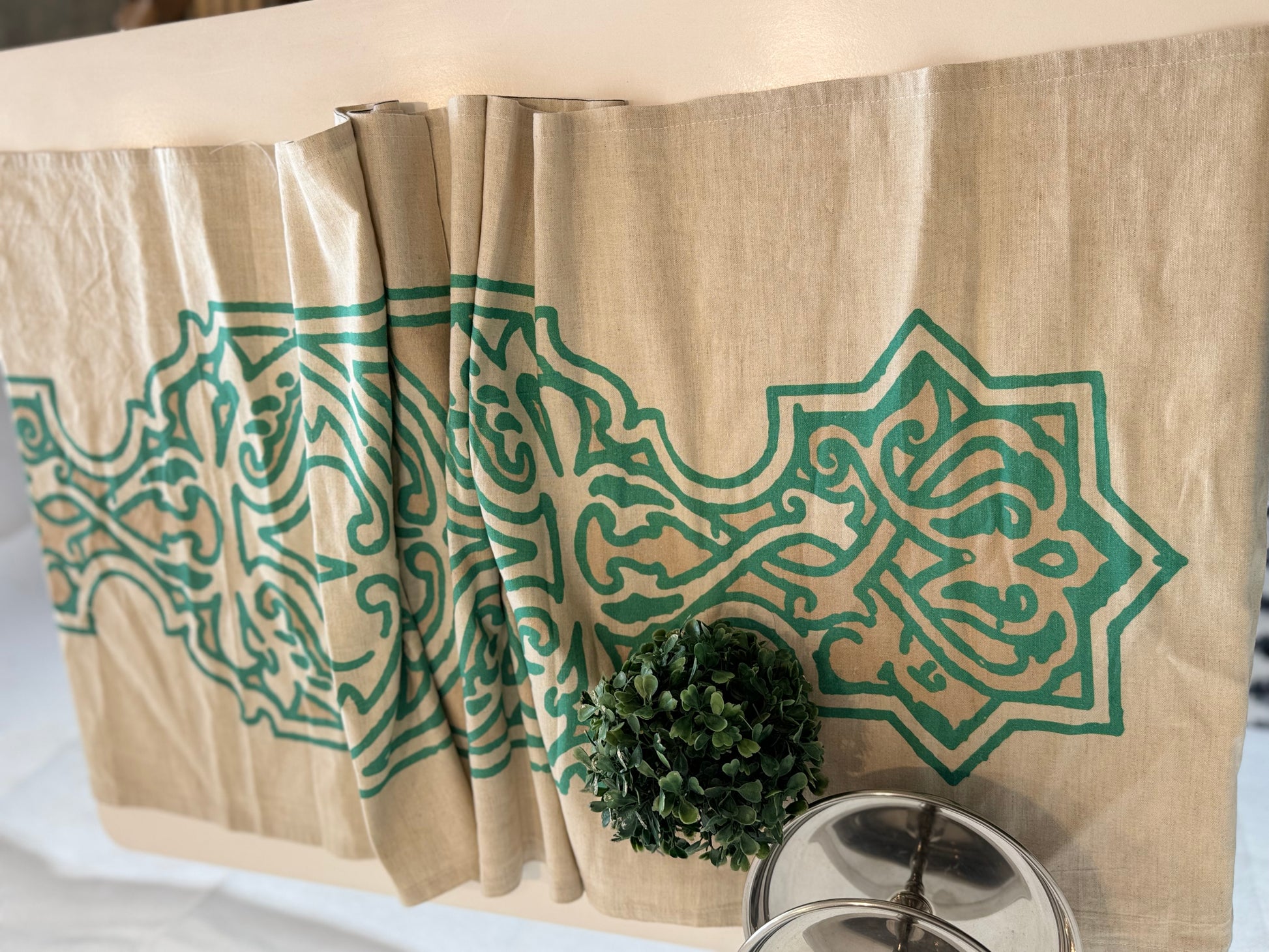 Neo Islamic runner - beige & mint linen